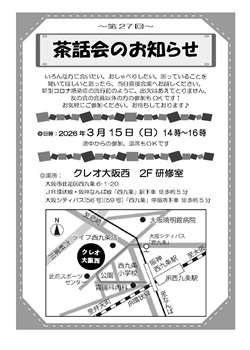 | 3月15日(日) | 運営委員会/13:00 第27回 茶話会/14:00-16:00 |